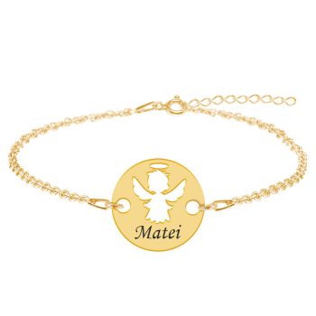 Angel – Bratara personalizata banut cu ingeras si nume gravat din argint 925 placat cu aur galben 24K