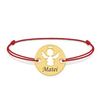 Angel – Bratara personalizata snur banut cu ingeras si nume gravat din argint 925 placat cu aur galben 24K