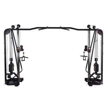 Aparatul de fitness Crossover este complex, o unitate pe cablu extrem de versatila care antreneaza o verietate de grupe musculare precum fesieri, solduri, coapse, biceps, triceps, dorsal mare, pectoral si deltoizi. Permite antrenarea mai multor persoane in acelasi timp deoarece are doua statii pe cablu, unite printr-o bara dotata cu manere pentru tractiuni la mijloc. Permite atasarea de manere pentru exercitii diversificate si scripeti reglabili. Specificatii: Latime: 870 mm Lungime: 3885 mm Inaltime: 2325 mm Greutate: 336 kg Greutati incluse: 2×80 kg Material: otel Muschi vizati: pectorali, muschii dorsali, muschii bratelor Greutatea maxima de antrenament este de 150 kg Greutate max utilizator bara tractiuni: 150 kg Producator: MS Fitness