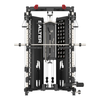 Aparat multifuncțional special conceput pentru antrenamente specifice ale întregului corp. Ideal pentru antrenamentul de forță. Permite efectuarea a peste 35 de exerciții diferite. Este proiectat după cele mai înalte standarde de performanță, ușor de utilizat, foarte robust, ceea ce îl fac un echipament esențial pentru un antrenament de calitate, atât acasă, cât și în sălile de sport rezidențiale, hoteluri și centre de fitness mici – Șasiu din oțel ranforsat.– Include multiple accesorii care sporesc posibilitățile de antrenament.– Rulmenți liniari care asigură o mare fluiditate amișcării și nu necesită întreținere.– Bară din aluminiu pentru discuri de greutate cu diametrul de 50 mm.– Scripeți rotativi reglabili pe înălțime.– Bară pentru dip-uri.– Bară și mâner pentru tracțiuni.– Stâlpi verticali cu numerotare a pozițiilor pentru a facilita reglarea elementelor.– Bare de siguranță pentru halteră atunci când se lucrează cu greutăți libere.– Opritor de siguranță reglabil pe înălțime pentru lucrul în siguranță cu haltera. –Punct de fixare pentru halteră (include mâner pentru conectarea la bară).– Role de susținere reglabile pe înălțime.– Fixare cu bandă elastică în partea superioară.– Suport pentru halteră în partea din spate a aparatului.– Cârlige pentru depozitarea accesoriilor când nu sunt utilizate.– Pictogramă cu exerciții.– Sarcină de antrenament: 90 kg + 90 kg.– Raport de rezistență:– Raport de scripetă: 1:1 și 1:2– Vâslit și tracțiune lată: 1:1– Greutate maximă a utilizatorului: 170 kg.– Dimensiuni: 224 × 153 × 190 cm.– Utilizare intensivă.