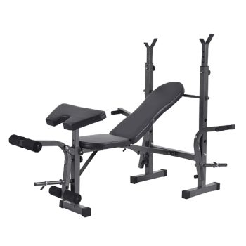 Aceasta banca multifunctionala permite antrenarea intregului corp, de la brate, spate, piept, abdomen si pana la picioare. Banca include un suport pentru haltera, doua manere pentru antrenarea bratelor si a pieptului, un accesoriu pentru biceps si un accesoriu pentru extensie picioare. Este realizata din cadru metalic de 50x50x1.2mm si tapiterie groasa si confortabila. Specificatii: Banca multifunctionala cu suport pentru bara Permite antrenarea bratelor, spatelui, pieptului, picioarelor Greutate: 21kg Dimensiuni: 46 *66 *125 cm Material: tub metalic de 50x50x1.2mm Producator: Hiperlion