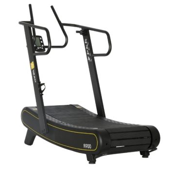 Prezentare generală Banda Curve Treadmill R900 de la TheWay Fitness este o bandă mecanică, curbă, folosită în principal pentru antrenamente HIIT (High‑Intensity Interval Training), sprinturi și antrenamente funcționale. Nu necesită alimentare electrică – utilizatorul devine „motorul” – și oferă un antrenament natural, similar alergării în aer liber. Design și funcționalitate Suprafață curbată tip lamelă, fără role motorizate, ideală pentru accelerație și decelerare direct controlate de poziția și forța pasului. Fără motor electric: banda pornește atunci când greutatea este mutată în față, iar utilizatorul oprește banda prin deplasarea înapoi pentru decelerare. Stabilitate și ergonomicitate: cadrul robust, adesea dotat cu balustradă opțională, susține utilizatori până la ~180 kg suportând sarcina intensivității în timpul sprinturilor. Beneficii pentru antrenament Antrenament complet: HIIT, sprint, rezistență cardio, forță explozivă. Economia de energie: consumă zero curent electric, fiind ideală pentru zone fără priză sau pentru utilizatori eco‑conștienți. Impact redus: piesele de rulare curbă și adesea materiale amortizatoare protejează articulațiile, mai ales la viteză mare. Intensitate controlată – utilizatorul dictează viteza şi dificultatea doar prin poziţia corpului, nu există limitări preconfigurate. Dimensiuni și construcție Dimensiuni: 177*76*160cm. Greutate: 72 kg. Rezistență: elemente precum DraxFit+ din gama Speedboard oferă o durată de utilizare garantată de zeci de mii de kilometri. Design robust și simplu: fără piese electrice, simplu de întreținut, fără vibrații, uzură redusă. Pentru cine este potrivită Sportivi și atleți orientați spre performanță, care practică HIIT și sprinturi. Săli de sport funcționale, box, CrossFit sau hoteluri cu spații dedicate fitness‑ului. Utilizatori acasă care doresc o bandă eficientă, rezistentă și independentă energetic. Avantaje cheie Auto‑provoacă-te – Antrenamente naturale și intense, fără limite prestabilite. Eco‑friendly – Zero consum, zero costuri energetice. Protecția articulațiilor – Suprafață curbată cu amortizare încorporată. Durabilitate – Materiale de calitate, fără componente electronice sensibile. Set‑up minim – Nu necesită cabluri electrice, operare simplă. Rezumat Curve Treadmill R900 este o bandă curbă manuală, solidă, fără motor, concepută pentru antrenamente funcționale și de tip HIIT, punând accent pe controlul natural al vitezei și pe un efort eficient, fără consum de energie. Ideală pentru utilizatori de nivel mediu şi avansat, pentru recuperare articulară și antrenamente de intensitate.