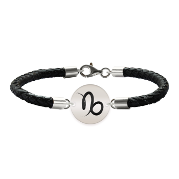Bratara Premium din piele impletita si banut argint 925 personalizat cu zodia Capricorn