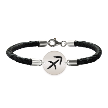 Bratara Premium din piele impletita si banut argint 925 personalizat cu zodia Sagetator