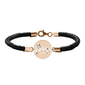 Bratara Premium din piele impletita si banut argint 925 placat cu aur Roz personalizat cu constelatii – Pesti