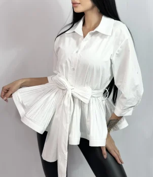 Camasa dama alba cu croiala deosebita si pliseuri in partea de jos