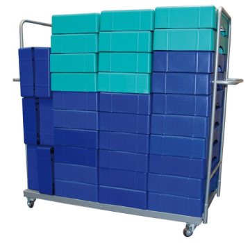 Carucior pentru steppere, cu 4 roti de cauciuc, pentru depozitare/transport, greutate carucior 41 kg, capacitate stocare 60 steppere, dimensiuni 80x150x150 cm, incarcare maxima aparat 200 kg, producator SVELTUS