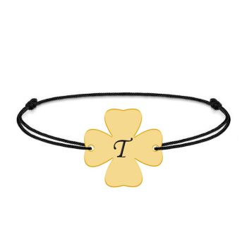 Clover – Bratara personalizata snur initiala – trifoi argint 925 placat cu aur galben 24K