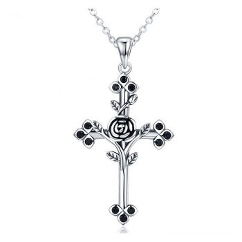 Colier din argint cu Cruce si Cristale Negre