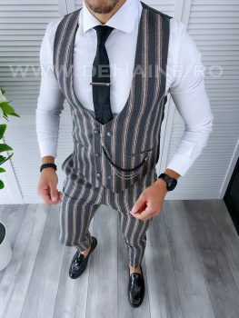 Compleu barbati Vesta + Pantaloni Compleu barbati office – compleu fashion – compleu elegant – compleu nunta – compleu botez Compleu Slim fit Material pantaloni conici: 63% poliester 35% vascoza 2% elastan Accesoriul nu este inclus Compleul cuprinde urmatoarele piese: Vesta Pantaloni Manechinul are 180 si 70kg si a pozat cu marimea 42. Dimensiune pantaloni Talie (cm) Lungime (cm) 30 39 102 31 40.5 102 32 42 102 33 43.5 102 34 45 102 36 46.5 102 Dimensiune vest..