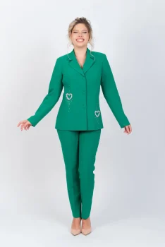 Compleu elegant verde compus din doua piese sacou accesorizat cu detalii pretioase si pantaloni pana