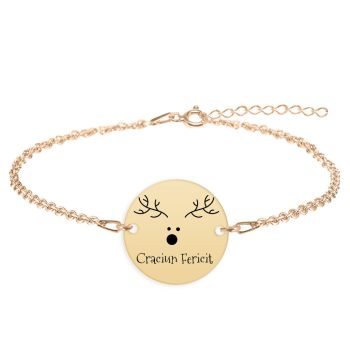 Deer – Bratara personalizata din argint 925 placat cu aur galben 24K- Craciun Fericit