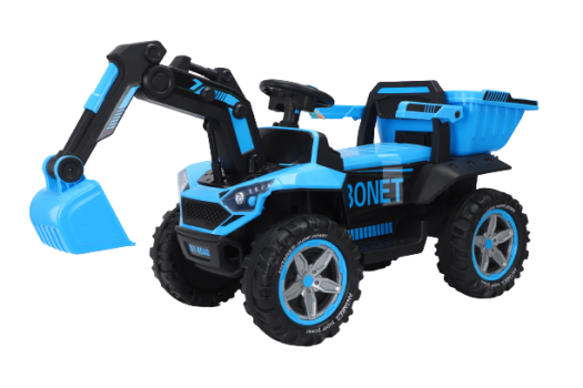 Dotari excavator electric Bonet echipat STANDARD Brat incarcator, actionat electric din maneta din bord Bascula achtionata electric 2 motore electric de putere 30W la teniune 12V, total 60W 12V Echipat cu baterie reincarcabila de 12V 7Ah Comutator...