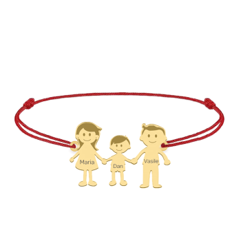 Family – Bratara personalizata snur cu pandantiv din argint placat cu aur galben 24K membrii familiei – 3 membri