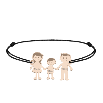 Family – Bratara personalizata snur cu pandantiv din argint placat cu aur roz membrii familiei – 3 membri