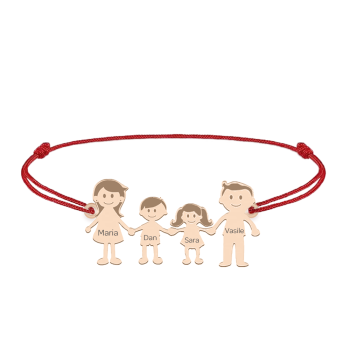 Family – Bratara personalizata snur cu pandantiv din argint placat cu aur roz membrii familiei – 4 membri