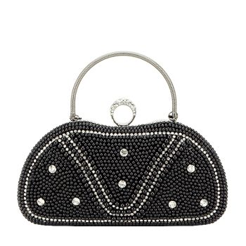 Geanta clutch negru cu perle si pietricele BME-22732 05