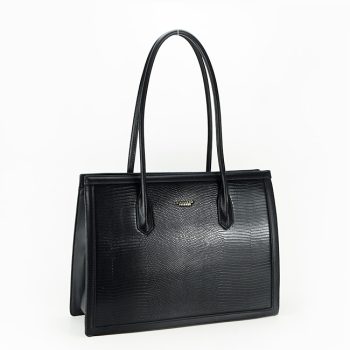 Detalii material: Geanta isi pastreaza forma, Captuseala: Material textil, Compartimente: 1 Compartiment, Buzunare: 1 interior cu fermoar, 2 interior fara inchidere, Sistem inchidere: Fermoar, Detalii: Detalii metalice aurii, Dimensiune…