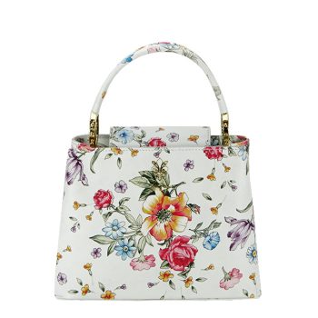 Geanta din piele natural cu imprimeu floral 8950 120 Alb