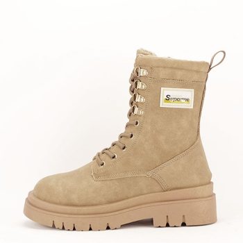 ghete bej casual din piele ecologica, talpa zimtata din cauciuc flexibil, interiorul este captusit cu blanita ecologica calduroasa, talpa interioara este captusita cu blanita ecologica, varf rotund, prevazute cu fermoar pe partea lateral-interioara,…