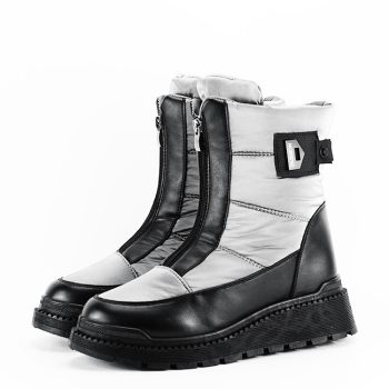 Ghete dama argintii din piele ecologica si material textil impermeabil, calitate superioara, talpa groasa si antiderapanta, intreriorul imblanit, foarte calduros, sistem de inchidere cu fermoar in partea din fata, model potrivit si pentru activitatile…