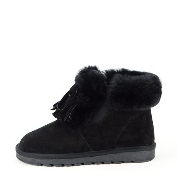ghete negre imblanite din piele intoarsa naturala, talpa zimtata captusita cu blanita calduroasa, tapla groasa din cauciuc flexibil, varf rotund, interiorul este căptușit cu blăniță de lână, exeriorul este decorat cu blanita naturala, INALTIMEA…