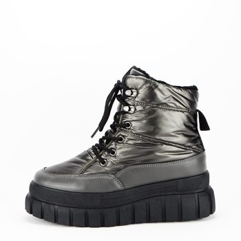 Ghete dama argintii, impermeabile, talpa groasa si antiderapanda, inchidere cu siret, captusite cu material textil calduros, calitate premium