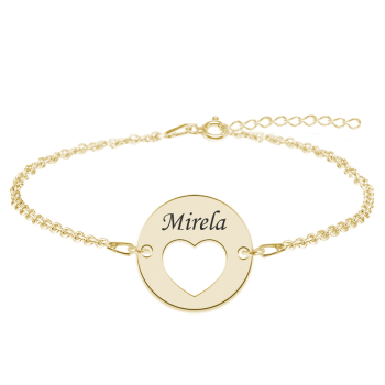 Heart – Bratara personalizata banut cu nume si inimioara din argint 925 placat cu aur galben 24K