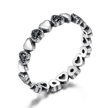 Inel din argint cu Inimi si Cristale Negre