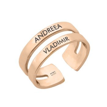 Ivy – Inel pesonalizat cu doua nume reglabil din argint 925 placat cu aur roz