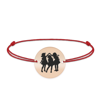 Joy – Bratara personalizata snur banut cu trei fetite din argint 925 placat cu aur roz