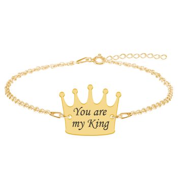 King – Bratara din argint 925 placat cu aur galben 24K personalizata cu text – coroana