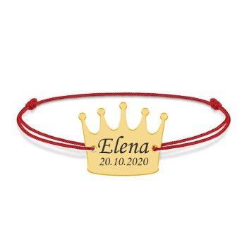 King – Bratara snur cu talisman din argint 925 placat cu aur galben 24K personalizata cu text – coroana