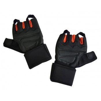 Manusi fitness ideale pentru antrenamentul cu greutati. Aceste manusi sunt special concepute pentru fitness, fara degete, din materiale de calitate, cu protectie in zonele mainii cele mai solicitate, cu scopul de a va proteja de bataturi si basici. Sunt prevazute cu inchideri velcro pentru o ajustare si o potrivire buna pe mana fiecaruia, indiferent de grosime. Specificatii: Lungime (cm) ~ 17.50 Lățimea (cm) ~ 14.50 Marimi disponibile: S, M, L, XL Greutate (kg) ~ 0,08 Culoare: portocaliu si negru Se vinde la pereche Compozitie: neopren + tesatura plasa