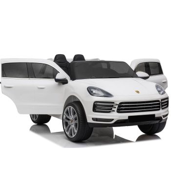 Masinuta electrica pentru 2 copii, Porsche Cayenne XXL, cu roti moi si scaun tapitat, 180W, 12V, alba
