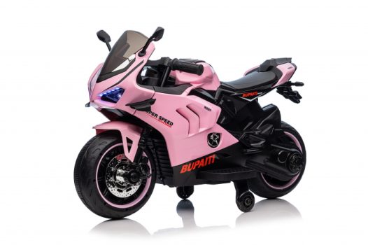 Motocicleta electrica pentru fetite, Kinderauto BDQ888 70W 12V cu roti moi, Bluetooth, culoare Roz