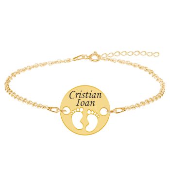 My Kid – Bratara personalizata din argint placat cu aur galben 24K banut cu nume si talpite