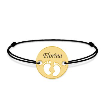 My Kid – Bratara personalizata snur cu talisman din argint 925 placat cu aur galben 24K cu nume si talpite