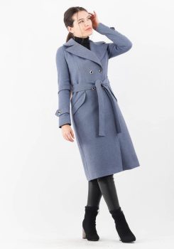 Palton albastru cu guler si rever ascutit