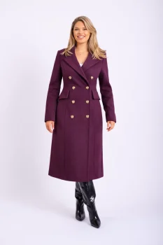 Palton dama de culoare visiniu confectionat din material de inalta calitate matlasat ideal pentru sezonul rece. Se inchide in partea din fata cu doua nasturi prezinta buzunare laterale. Are un croi cambrat mânecile au slitcu butoniere si nasturiiar pe laterale are buzunare ascunse cu clapa decorativa. Paltonul este vatelinat pentru a mentine caldura corpuluiIntretinere:Respectati instructiunile de curatare de pe eticheta produsului.Info model:Inaltime 170 cm poarta marimea S.Produs fabricat in Romania.Compozitie 90% polyester 10% lâna