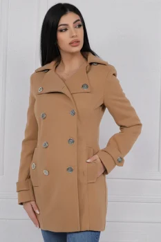 Palton dama bej cu doua randuri de nasturi si buzunare laterale