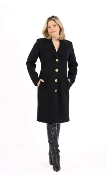 Palton dama cambrat negru cu nasturi metalici si buzunare laterale
