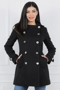 Palton dama negru cambrat prevazut cu doua randuri de nasturi metalici
