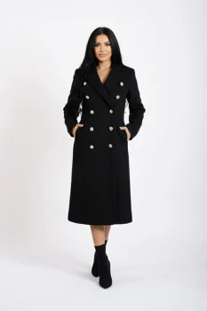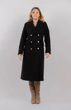 Palton dama negru cu nasturi pretiosi si buzunare laterale cu clapeta