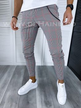 Pantaloni barbati casual regular fit gri in carouri B1910 S2-3 F6-5.1