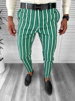 Pantaloni barbati eleganti verzi in dungi B1772 B15-3.1