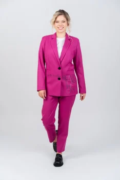Pantaloni lungi drepti conceputi cu talie înalta si cu elasticizare la spate. Pentru a-ti defini silueta si a-ti crea o tinuta stilata în orice moment al zilei pantalonii lungi de nuanta roz cu buzunare sunt alegerea optima.Se închid cu fermoar ascuns si cu capsa.Asorteaza-i cu o camasa sau tricou si concepe un outfit lejer sau cu sacoul roz si creeaza un stil office. Pantaloni office/casualTalie inaltaCroi conicInchidere cu nasture si fermoarMaterial: StofaCompozitie: 78% Poliester 5% Spandex 17%Vascoza.Instructiuni de intretinere: *Va rugam verificati eticheta produsului inainte de curatareProdus romanesc.Info model:inaltime 170 cm poarta marimea S