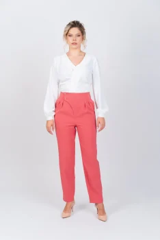 Pantaloni office/eleganti corai cu talie inalta si pliuri cu croi conic confectionati din stofa de calitate usor elastica. Talie inalta prevazuti cu design deosebit inchidere cu fermoar si nasture buzunare laterale. Un basic indispensabil in garderoba unei femei pe un material de buna calitate.Pantaloni officeTalie inaltaCroi conicInchidere cu nasture si fermoarMaterial: StofaCompozitie: 88% Poliester 12% SpandexInstructiuni de intretinere: *Va rugam verificati eticheta produsului inainte de curatareProdus romanesc.Info model:inaltime 170 cm poarta marimea SMARIME PRODUSTALIESOLDLUNGIME S(36)64-6686-88105M(38)66-6888-90105L(40)68-7092-94106XL(42)72-7496-98106XXL(44)76-78100-1021073XL(46)80-82104-1061074XL(48)84-86108-1101085XL(50)88-90112-114108