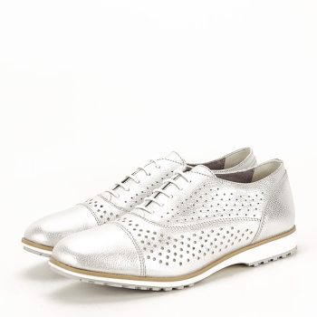 pantofi oxford din piele naturala, talpic din piele naturala, captusit cu material textil, talpa comoda si flexibila, se inchide cu siret alb in fata, varf rotund, INALTIME TALPA – 2 cm NUANTA – argintiu STIL -casual office TARA DE PROVENIENTA…