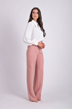 Pataloni evazati cu talie inalta de culoare roz-prafuit